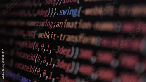 Wall mural 4k close-up shot programming tag code on pc monitor scroll down. background concept for programming