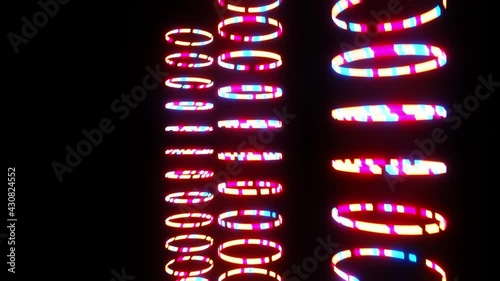 The watermark will not be included on Wall mural.: 4k video animation of a beautiful abstract neon sci-fi colorful circular objects three-set moving an