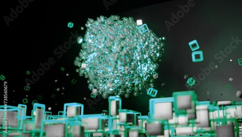 Wall mural 4k video animation of abstract sci-fi large cube made with sets of cubes and blue frame cinematic mo - Wall murals Wall mural 4k video animation of abstract sci-fi large cube made with sets of cubes and blue frame cinematic mo - Wall murals