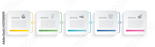 The watermark will not be included on Wall mural.: 5 data infographics square tab paper index template - vector illustration abstract background -