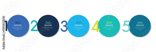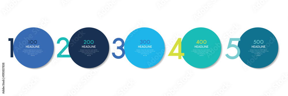 The watermark will not be included on Wall mural.: 5 elements scheme, diagram - five empty connected circles - infographic template -