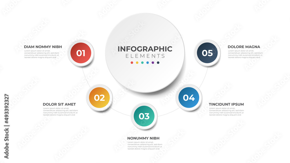 Wall mural : 5 points circular sequence element of infographic, presentation, etc -