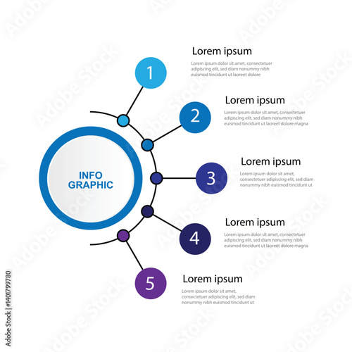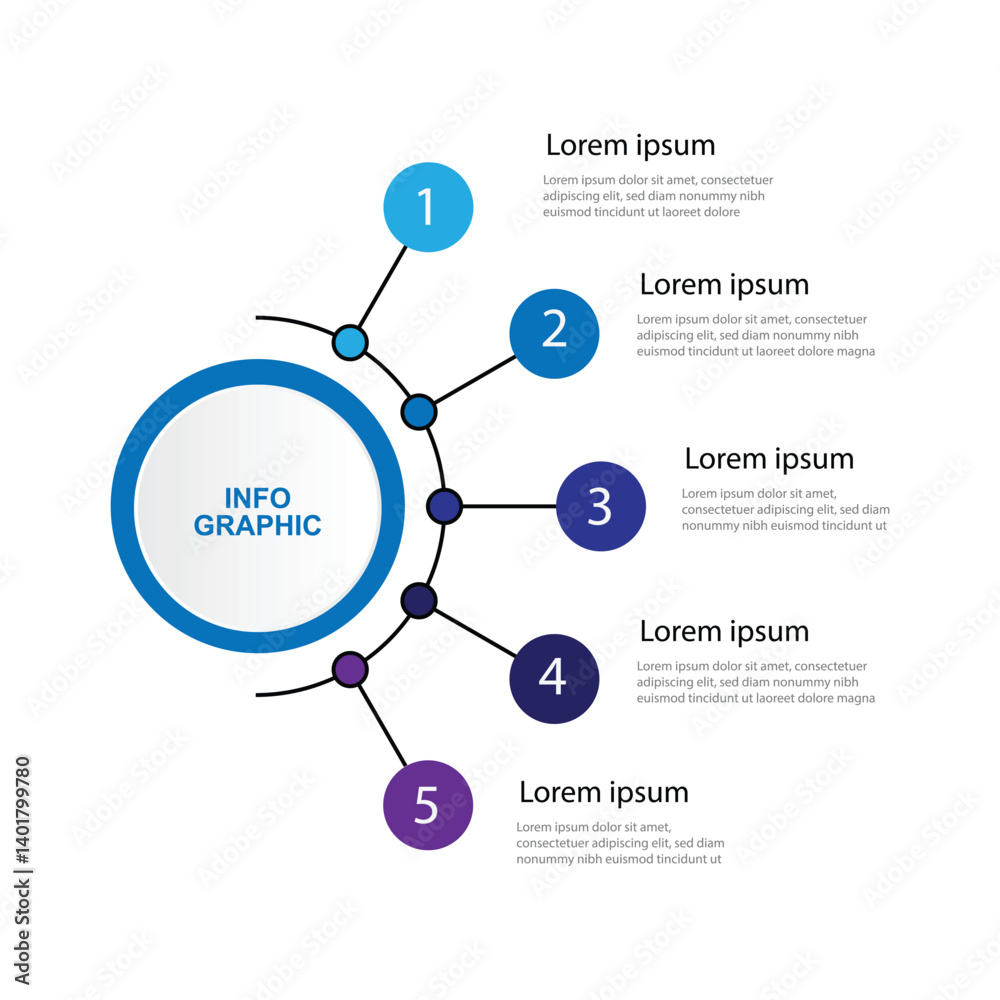 The watermark will not be included on Wall mural.: 5 step diagram circle infographic template - vector line connected with number for workflow, business