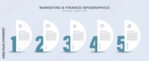 The watermark will not be included on Wall mural.: 5 steps or parts vector infographics design template with icons and text