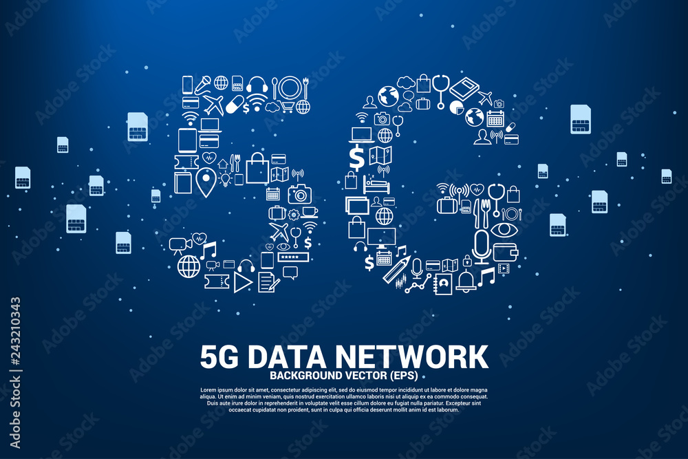 Wall mural 5g data technology from online function icon. concept for mobile telecommunication global network. - Wall murals Wall mural 5g data technology from online function icon. concept for mobile telecommunication global network. - Wall murals