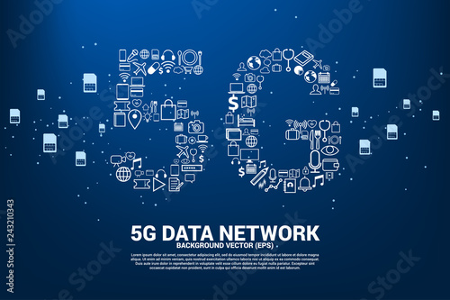 Wall mural 5g data technology from online function icon. concept for mobile telecommunication global network.