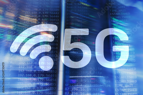 The watermark will not be included on Wall mural.: 5g network, 5g internet connection concept in digital background - smart communication network concep