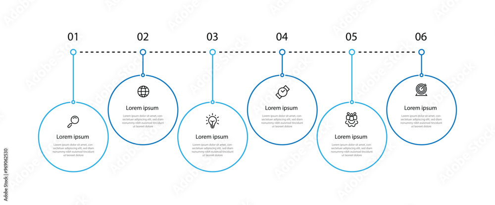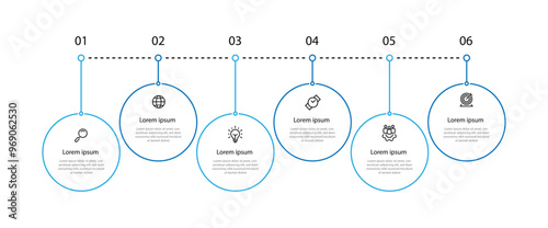 6 step process infographic template vector with icons can be used for workflow, business informationWall mural