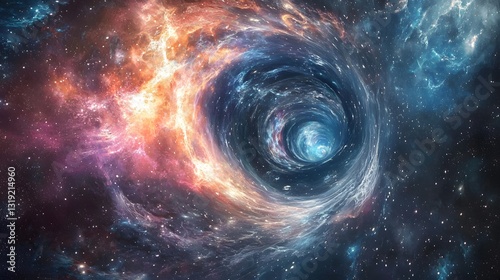 The watermark will not be included on Wall mural.: 64 - a deep cosmic vortex leading into an infinite galactic expanse, illustrating the endless cycle o