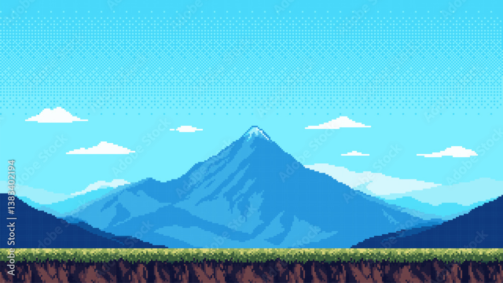 The watermark will not be included on Wall mural.: 8-bit pixel art retro game level background - 2d platformer video game - side view of a fantasy world -