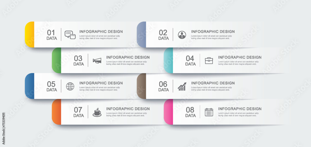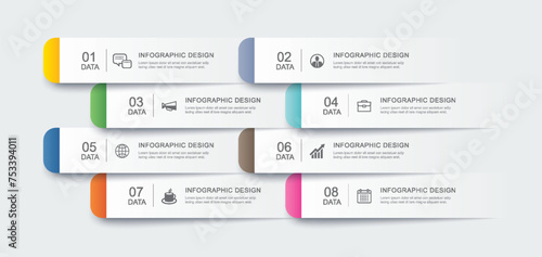 Wall mural : 8 data infographics tab paper index template - illustration abstract background -