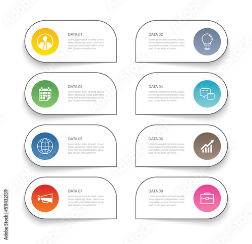 Wall mural : 8 data infographics tab thin line index template - vector illustration abstract square infographic ba