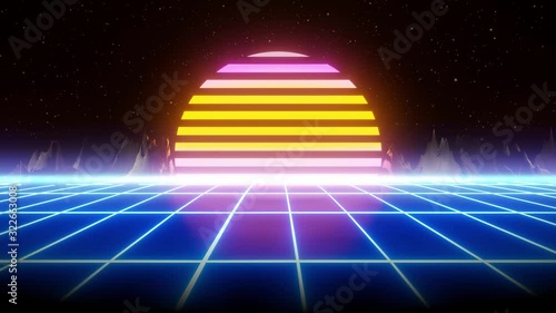 The watermark will not be included on Wall mural.: 80s retro synthwave grid 3d render animation