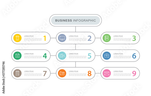 Wall mural : 9 data infographics tab index template with thin line design - vector illustration abstract backgroun
