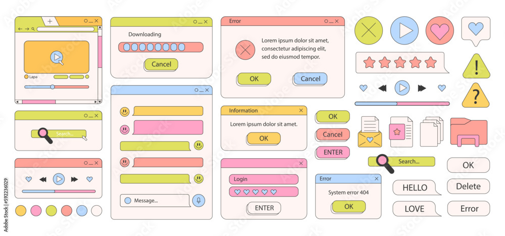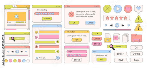 Wall mural 90s retro vaporwave old desktop user interface elements. cute nostalgic computer ui, vintage aesthet