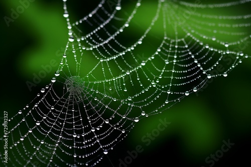 Wall mural : a macro shot capturing the intricate details of a spider's delicate web adorned with morning dew.