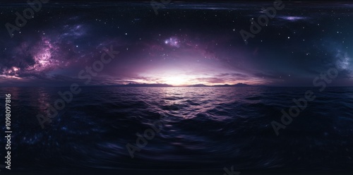 The watermark will not be included on Wall mural.: A 360-degree equirectangular projection space background featuring nebulae and stars, serving as an