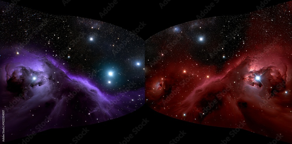 Wall mural a 360-degree panoramic view of a nebula in space, presented in equirectangular projection as an envi - Wall murals Wall mural a 360-degree panoramic view of a nebula in space, presented in equirectangular projection as an envi - Wall murals