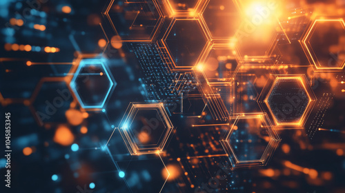 Wall mural a 3d design showing a hexagonal pattern that represents technology, data transfer, and artificial in - Wall murals Wall mural a 3d design showing a hexagonal pattern that represents technology, data transfer, and artificial in - Wall murals