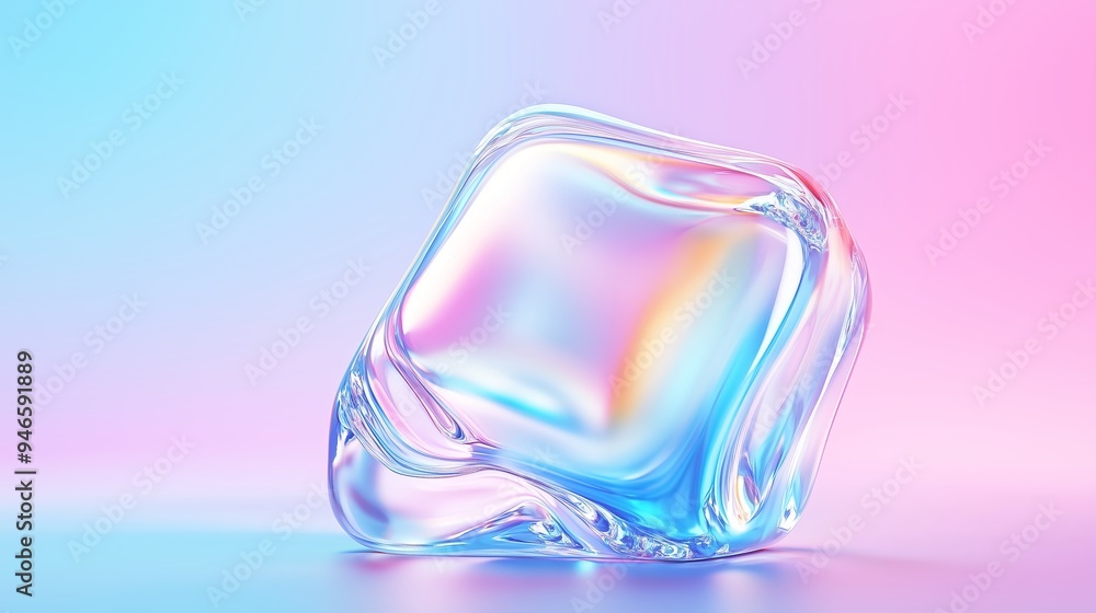 Wall mural : A 3d icon of a colorful acrylic cube on a color background -