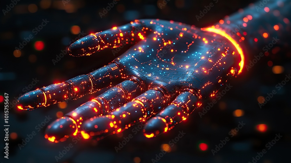 Wall mural a 3d illustration of a robot ai hand, highlighting futuristic technology concepts with artificial in - Wall murals Wall mural a 3d illustration of a robot ai hand, highlighting futuristic technology concepts with artificial in - Wall murals