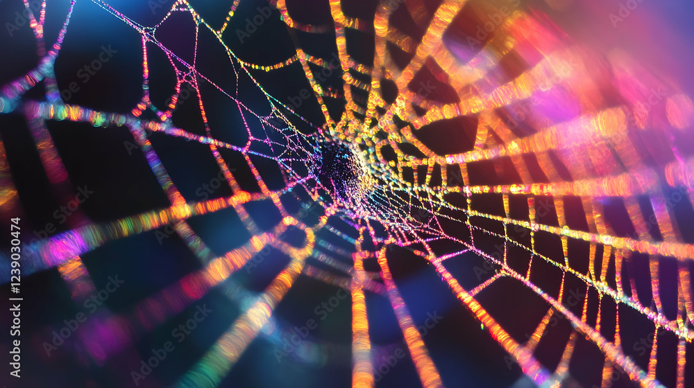 Wall mural a 3d prismatic spiderweb in rainbow foil and void, intricate and fragile