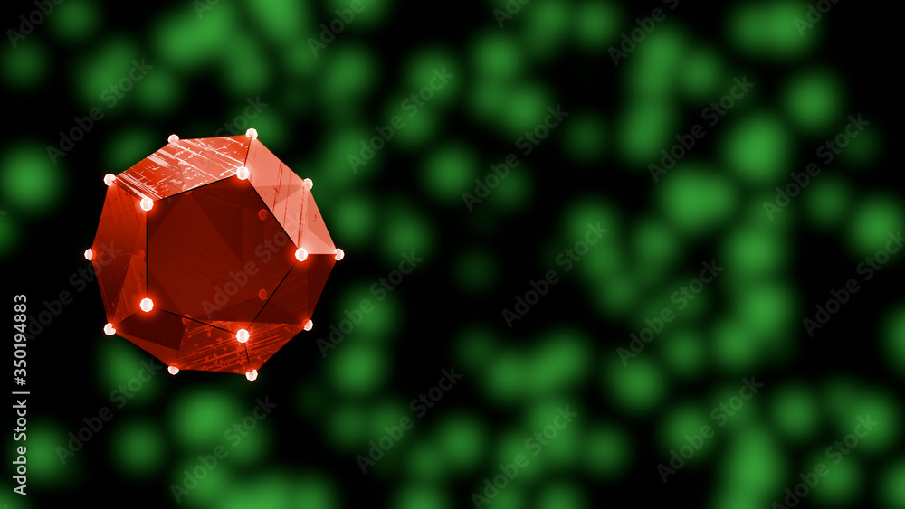 Wall mural a 3d render red low poly figure covered with a white net of dots floats over defocused green backgro - Wall murals Wall mural a 3d render red low poly figure covered with a white net of dots floats over defocused green backgro - Wall murals