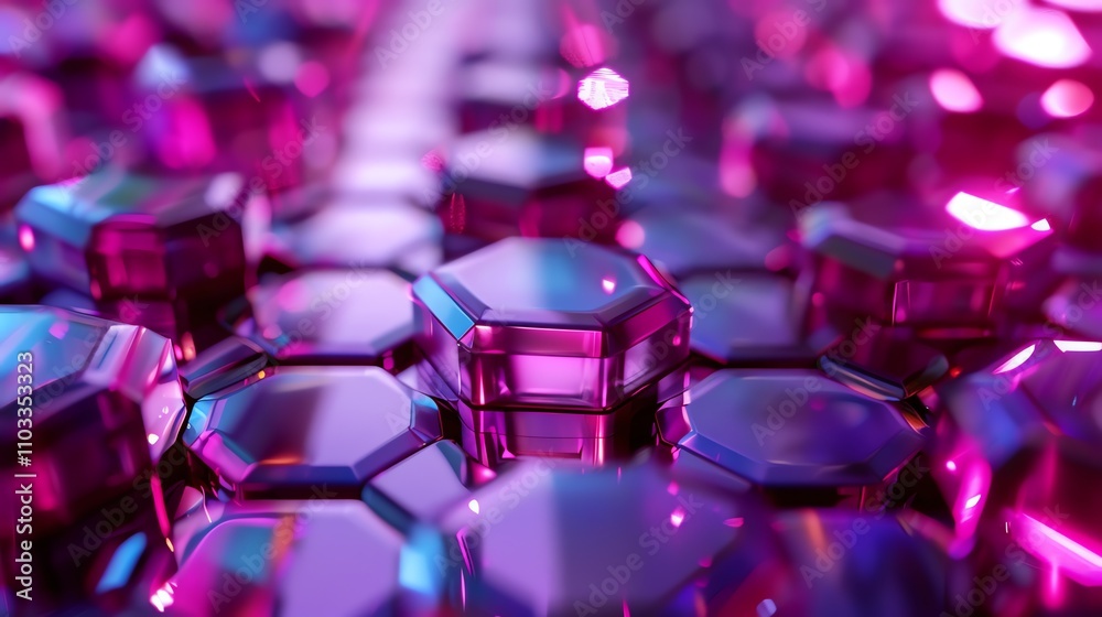 Wall mural a 3d rendering of a cluster of purple iridescent hexagons with a glowing effect. - Wall murals Wall mural a 3d rendering of a cluster of purple iridescent hexagons with a glowing effect. - Wall murals