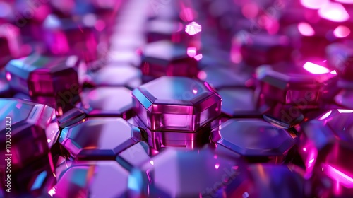The watermark will not be included on Wall mural.: A 3d rendering of a cluster of purple iridescent hexagons with a glowing effect -