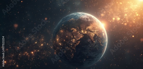 Wall mural a 3d rendering of the earth in space with stars and nebula