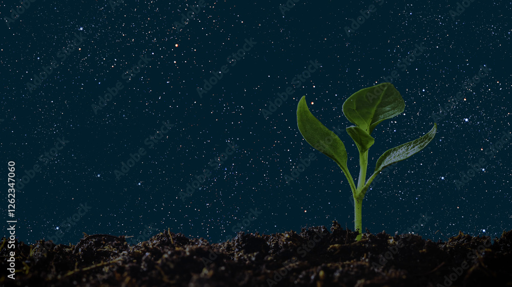 Wall mural a a movement of stars in the night sky with the view of mountains..