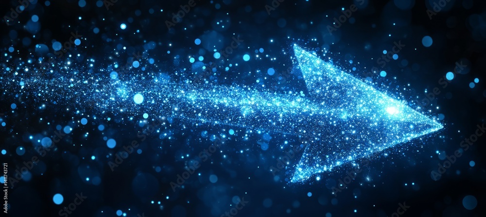 Wall mural a arrow with a lot of dots on it. abstract arrow with digital lines and glowing dots on a blue backg
