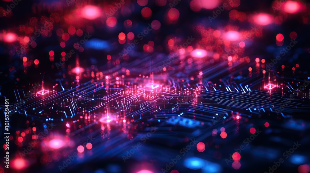 The watermark will not be included on Wall mural.: A banner with abstract printed circuit board elements, representing the intricate connections of tec