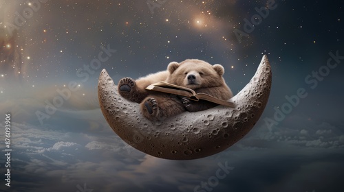 The watermark will not be included on Wall mural.: A bear is sleeping on a moon