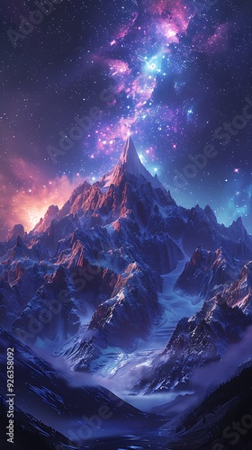 The watermark will not be included on Wall mural.: A beautiful night sky with mountains in the background and a colorful cloud of light - the sky is fil