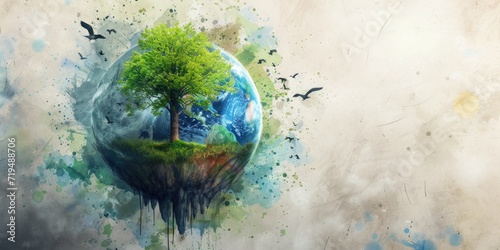 Wall mural a beautiful painting of a tree standing on a floating island. perfect for adding a touch of nature a - Wall murals Wall mural a beautiful painting of a tree standing on a floating island. perfect for adding a touch of nature a - Wall murals
