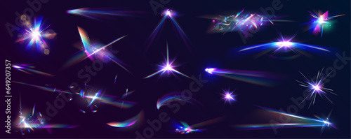 Wall mural a big set of light effects of abstract refractive glow and glare with rainbow colors. transparent re