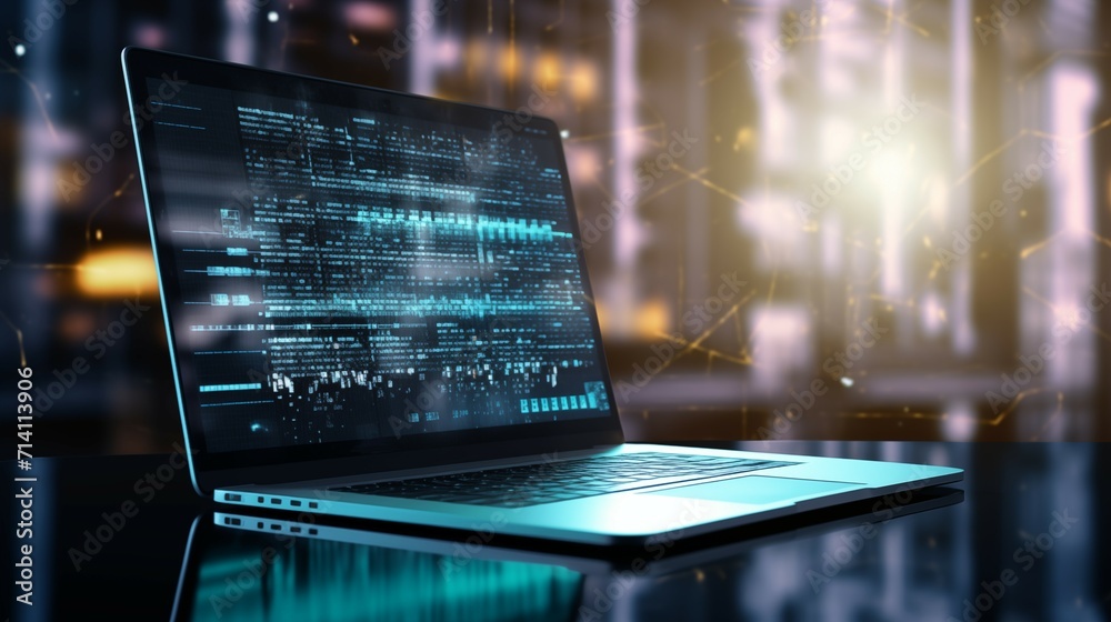 The watermark will not be included on Wall mural.: A binary code displayed on a laptop screen