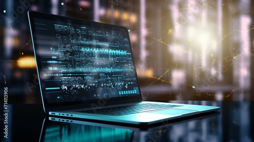 Wall mural : A binary code displayed on a laptop screen