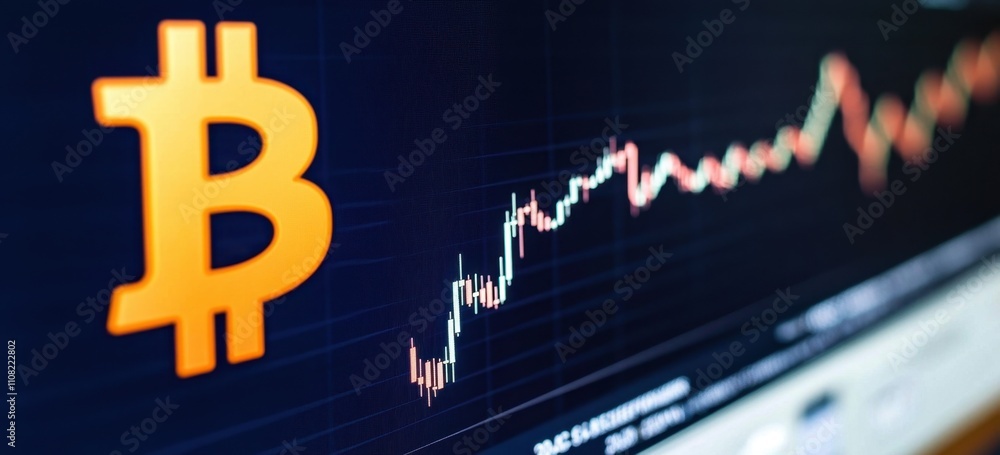 Wall mural a bitcoin logo with a trading chart on a dark blue background web banner with copy space on generati - Wall murals Wall mural a bitcoin logo with a trading chart on a dark blue background web banner with copy space on generati - Wall murals