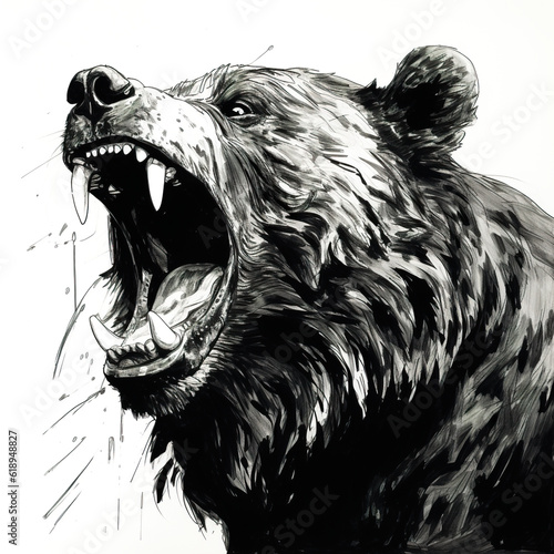 Wall mural a black and white drawing of a bear with its mouth open. generative ai. - Wall murals Wall mural a black and white drawing of a bear with its mouth open. generative ai. - Wall murals