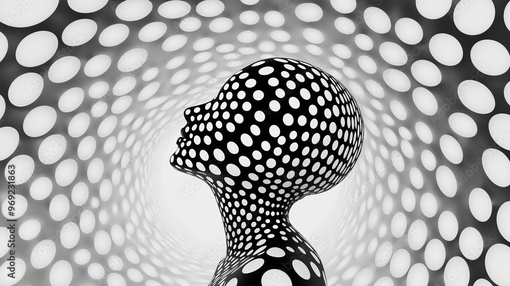 Wall mural a black and white image of a face with a large number of dots surrounding it. the image has a surrea - Wall murals Wall mural a black and white image of a face with a large number of dots surrounding it. the image has a surrea - Wall murals