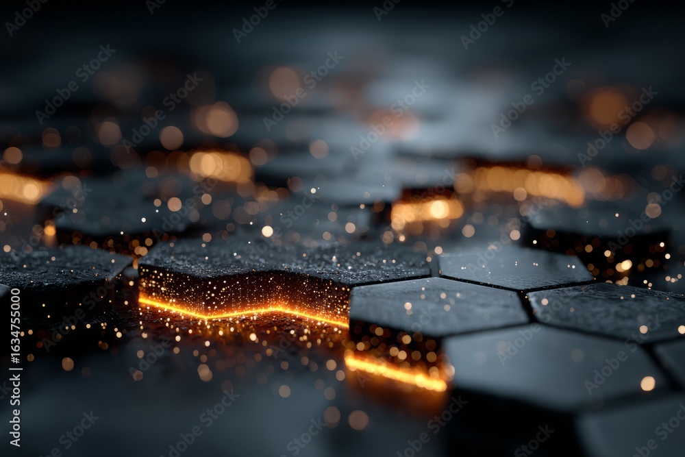 The watermark will not be included on Wall mural.: A black and white image of a pattern of hexagons with a blue background