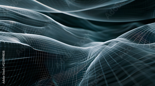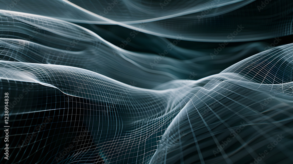 The watermark will not be included on Wall mural.: A black and white image of a wave with a grid pattern -