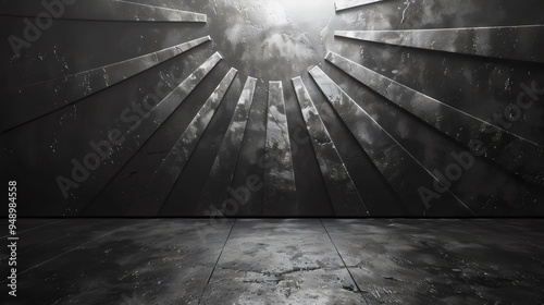 The watermark will not be included on Wall mural.: A black and white photo of a room with a large empty space and a lot of lines
