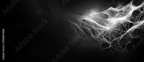 Wall mural a black-and-white spider web image against a dark backdrop with a central lightning effect - Wall murals Wall mural a black-and-white spider web image against a dark backdrop with a central lightning effect - Wall murals