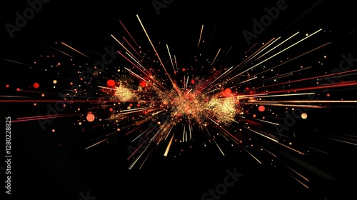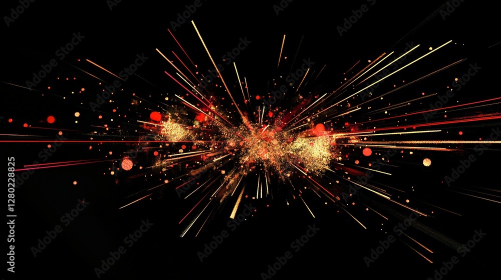 Wall mural a black background with abstract particle explosions in red and gold