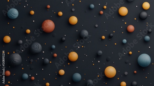 Wall mural a black background with many different colored spheres scattered throughout - Wall murals Wall mural a black background with many different colored spheres scattered throughout - Wall murals