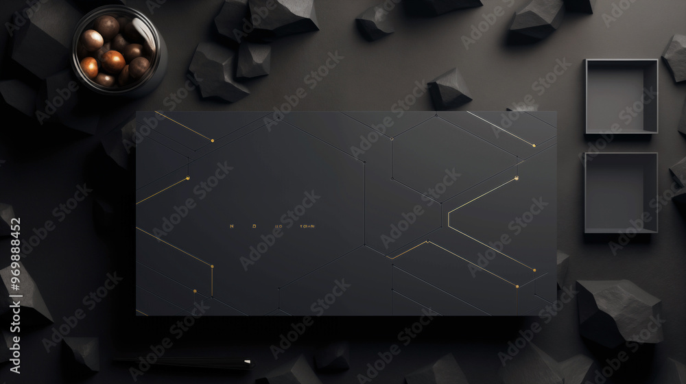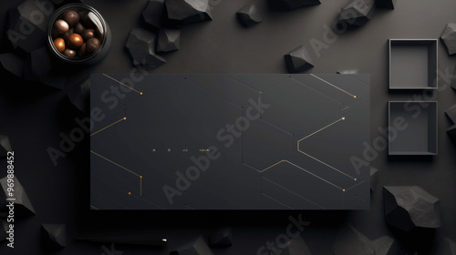Wall mural a black box with a gold border sits on a table with a pile of rocks. there is space for text. - Wall murals Wall mural a black box with a gold border sits on a table with a pile of rocks. there is space for text. - Wall murals