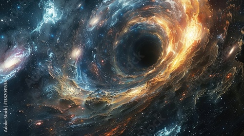 Wall mural a black hole pulling in space, with swirling galaxies and stars around it. the event horizon is visi - Wall murals Wall mural a black hole pulling in space, with swirling galaxies and stars around it. the event horizon is visi - Wall murals